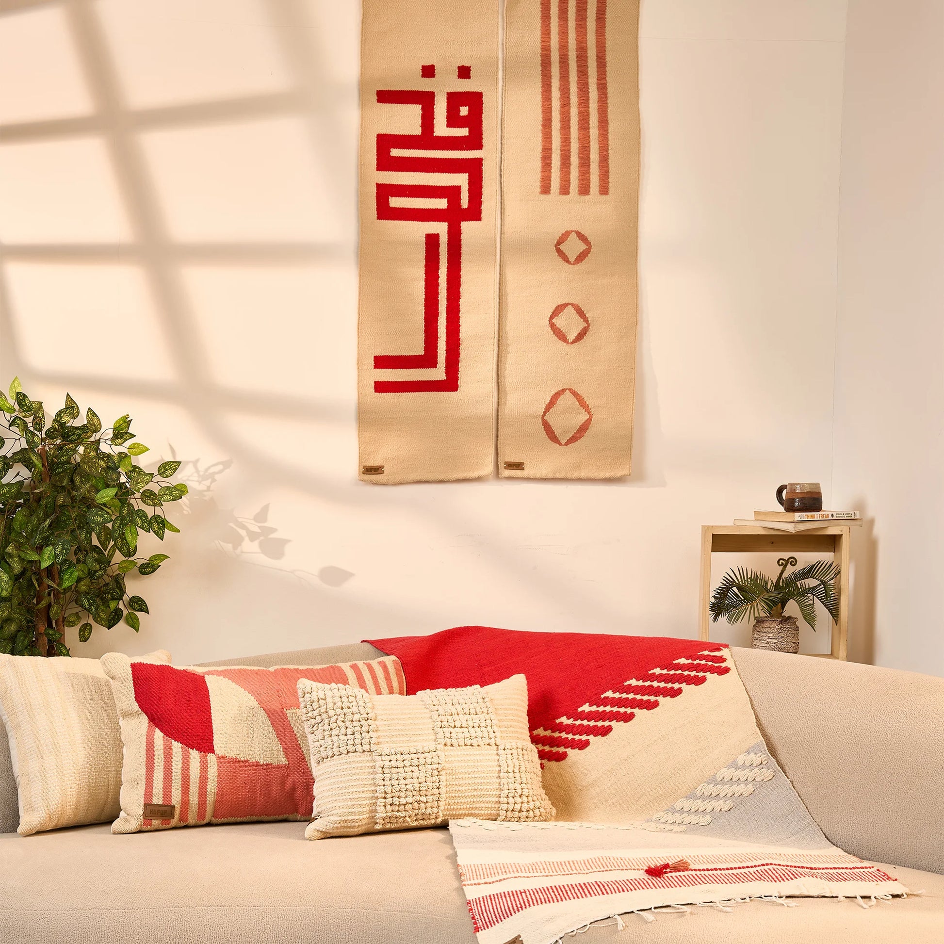 This luminous kilim triptych from the Malouf Collection presents the word “Fakhour”—meaning “The Proud One”, not as a statement of ego, but as a celestial map of earned brilliance. It explores the proud momentum that comes from honoring one's journey, a glowing confidence that illuminates the path forward.